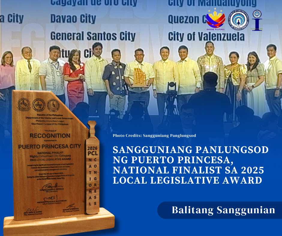 Kinilala bilang National Finalist – Highly Urbanized Cities Category sa 2025 Local Legislative Award ang Sangguniang Panlungsod ng Puerto Princesa sa ilalim ng ika-17 Sangguniang Panlungsod na pinamunuan ni dating Bise Mayor Maria Nancy M. Socrates.